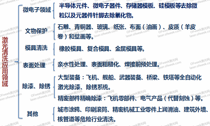 今的制造業(yè)發(fā)展迅猛,各種機(jī)械、電子產(chǎn)品的應(yīng)用規(guī)模均大為增長(zhǎng)。但這些設(shè)備在裝配之前以及運(yùn)行一段時(shí)間之后,都需要進(jìn)行一些維護(hù),其中就包括對(duì)部分材料或部件進(jìn)行清洗。傳統(tǒng)的清洗工藝如機(jī)械摩擦清洗、化學(xué)腐蝕清洗、強(qiáng)力沖擊清洗、高頻超聲清洗等,非常耗時(shí),無(wú)法實(shí)現(xiàn)自動(dòng)化,而且通常對(duì)環(huán)境造成有害影響。同時(shí),也沒(méi)有測(cè)量清潔效果的可靠方法。與之相比,激光清洗具有無(wú)污染、無(wú)消耗品、成本低、效率高、無(wú)接觸、無(wú)應(yīng)力、無(wú)損傷、可控性好、可選區(qū)精密清洗、可清洗難以到達(dá)的危險(xiǎn)的區(qū)域等優(yōu)點(diǎn),被認(rèn)為是未來(lái)最可靠、最有效的解決清洗問(wèn)題的辦法。